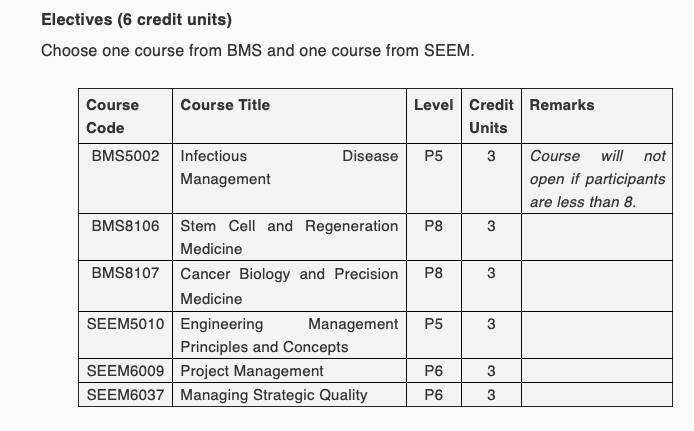 课程包含了BMS/MS/SEEM多个学科的相关内容,总体来说课程难度比较有挑战性,而且有一些课程是和Phd一起上的,含金量up up!