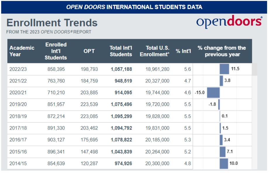 2022-23学年留美国际生人数上涨11.5%,总人数重回百万