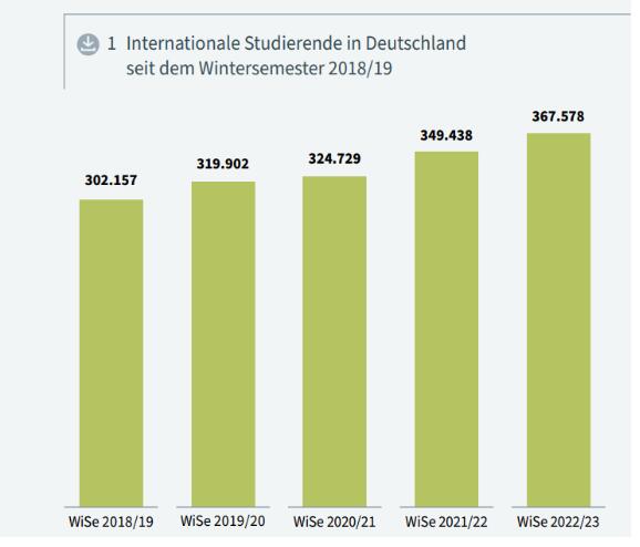 据《2023科学大都会》报告数据显示,2022/2023冬季学期,在德国学习的国际学生以37万的数字创下新高,较上一年上涨5%。