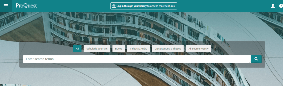 ProQuest是世界上最 大的学术资料库之一,里面搜集了各种学术期刊、论文、书籍、报纸、专利以及论文等。