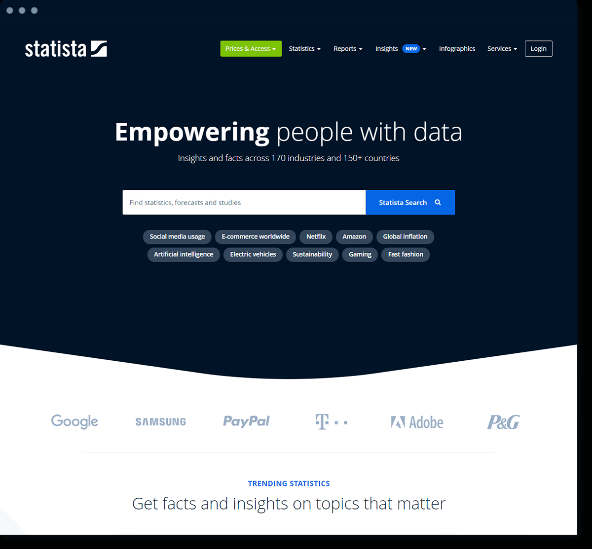 Statista也是一个权威的在线平台,里面提供了各种各样的数据资源,包括市场统计数据、行业报告、调查数据等。